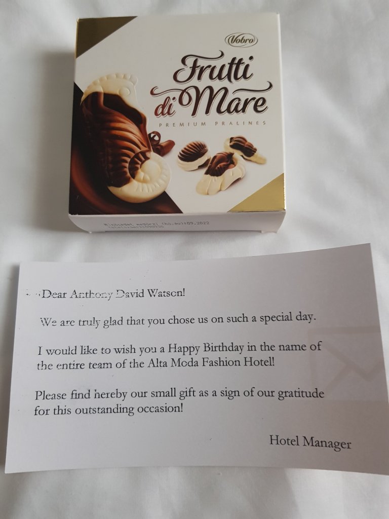 We were both touched when our hotel left him this when the staff found out it was his birthday.