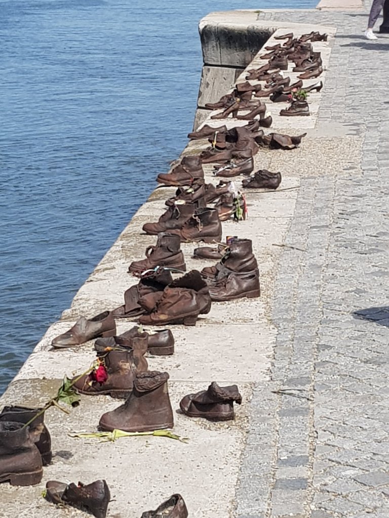 This is a sculpture of shoes erected in 2005, in memory of thousands of people who were shot into the river by the Arrow Cross Militiamen, over a six month period in 1944 to 1945.